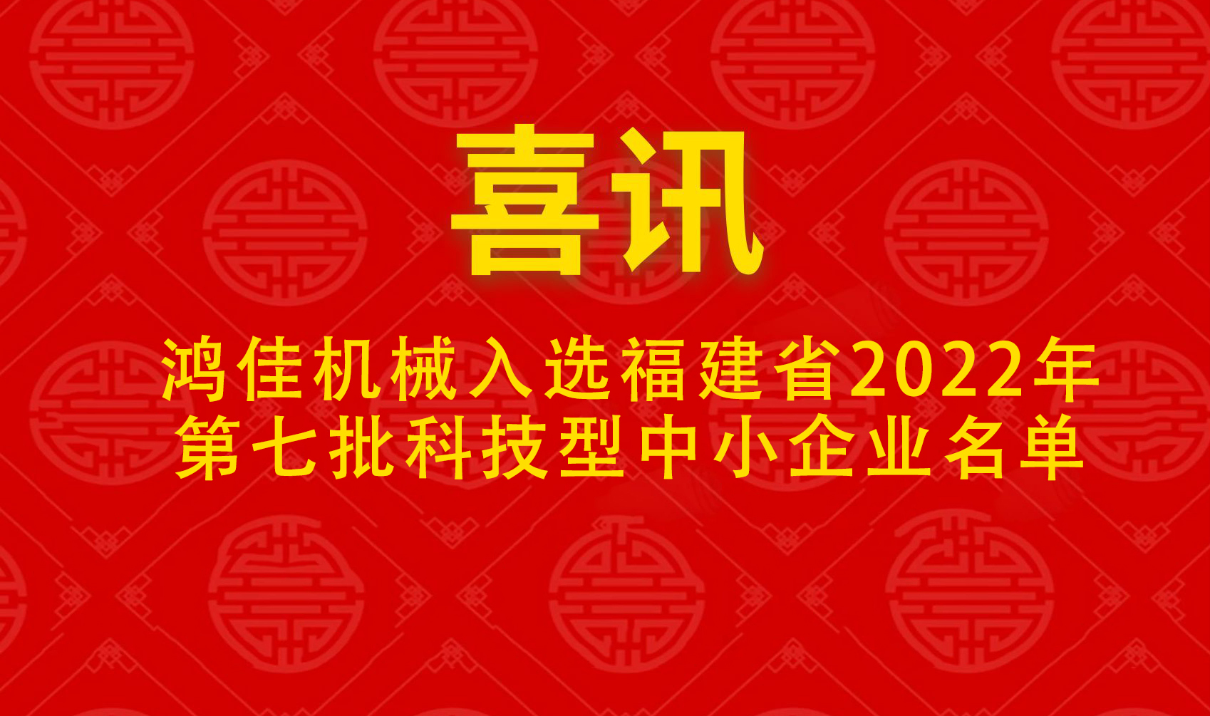喜訊 | 鴻佳機(jī)械入選福建省2022年第七批科技型中小企業(yè)名單